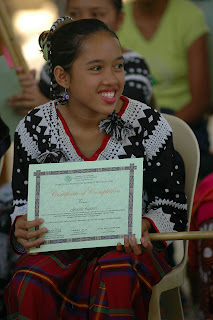 GLAN, Sarangani (June 8, 2007) - Grascela Lasnan, 14, smiles after receiving her certificate of completion during the graduation ceremony of the School of Living Tradition (SLT) on traditional musical instruments-making and –playing Friday (June 8) at barangay Kapatan. The SLT aims to restore, preserve and promote the cultural heritage of the different ethno-linguistic groups in Sarangani by transferring the indigenous knowledge system from the cultural masters to cultural learners or bearers. (Photo by SARANGANI INFORMATION OFFICE/CAS)